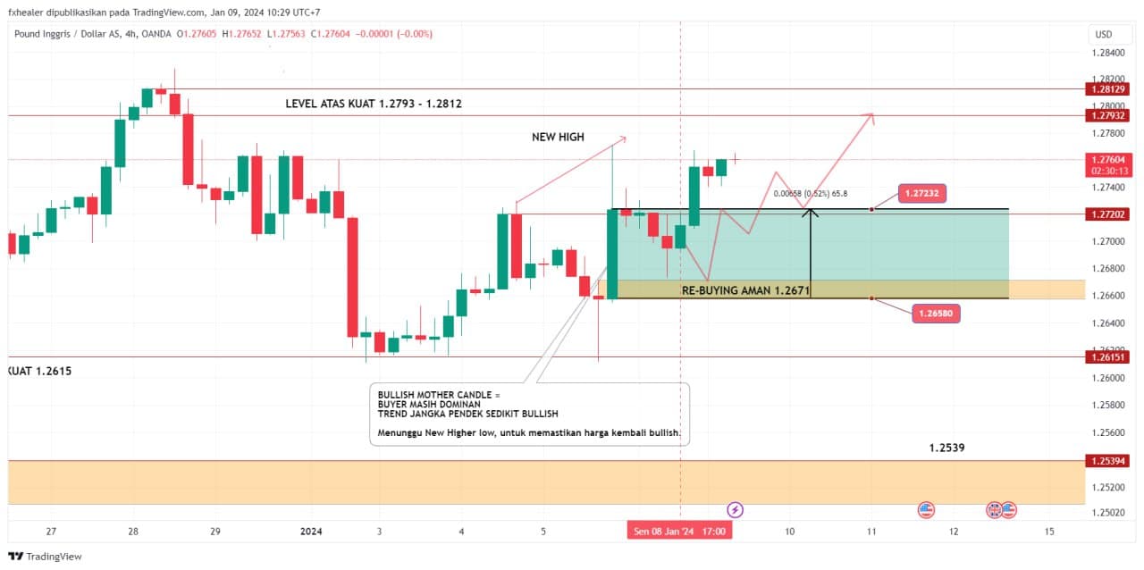 GBPUSD UPDATE 1/9/2024 January 9, 2024 by admin Analisa Forex Mother candle Break out on High. Selanjutnya OTW to 1.2793 #Disclaimer ON